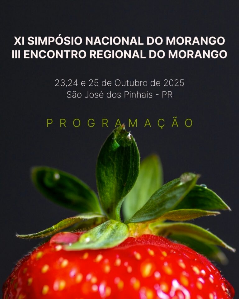 De 23 a 25 de outubro, em São José dos Pinhais (PR), o evento reúne produtores, pesquisadores e técnicos para trocar experiências, conhecer inovações e celebrar o lançamento da Rota do Morango e a abertura oficial da safra 2025.